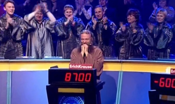 Первые 12 пилотных выпусков (на тот момент программа ещё не получила названия)[7] по очереди провели члены клуба «Что? Где? Когда?» Борис Бурда, Сергей Царьков и Владимир Белкин[8][9][10]. Последний постоянно путался в правилах, вследствие чего было принято решение пригласить другого, более молодого ведущего, которым и стал Пётр Кулешов, на тот момент работавший в сценарном отделе компании «Video International». Он провёл пробный 1-й раунд, во 2-м раунде поменялся местами с Владимиром Белкиным и обыграл двоих докторов наук, после чего на постоянной основе стал бессменным ведущим телеигры[11].